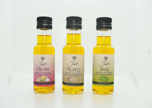 Speciality Gift Pack - Stir Fry, Basil and Truffle Infused Cold Pressed Rapeseed Oil, 100ml (Pack of 3)