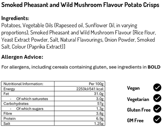 Smoked Pheasant and Wild Mushroom Potato Crisps 150g (Case of 12)