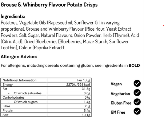 Grouse and Whinberry Potato Crisps 150g (Case of 12)