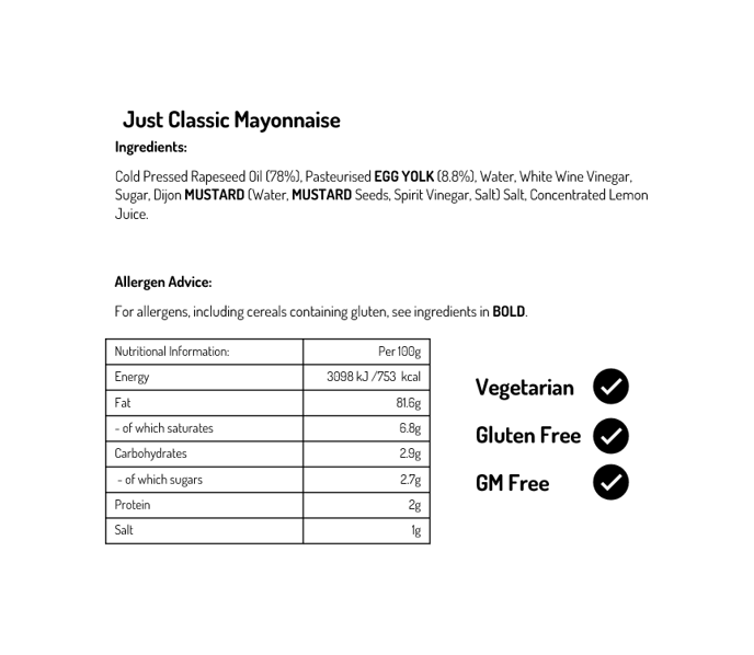 With minimum effort make many a meal a special occasion with Just Mayonnaise. From making mouth-watering toasties by spreading some of our mayonnaise on your bread before grilling to whipping up a creamy herb dip to go with your favourite pizza. Not forgetting to add a dollop of mayonnaise to make that lunchtime sandwich just a bit more delicious!