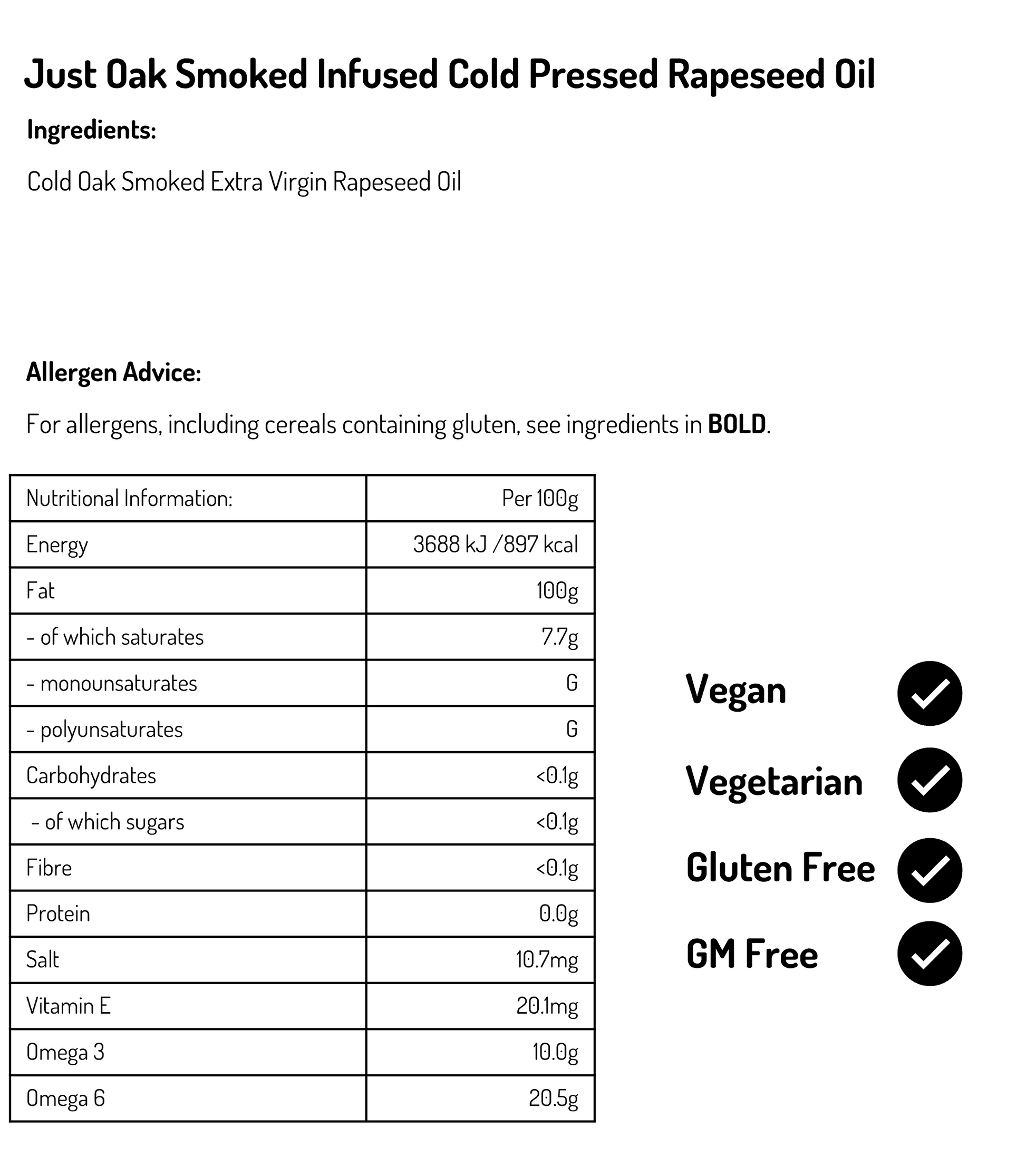 Oak Smoked Infused Cold Pressed Rapeseed Oil 250ml (Case of 6)